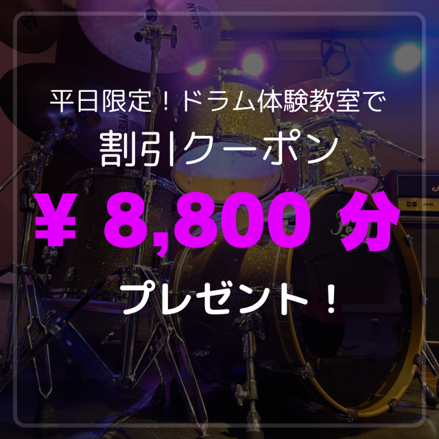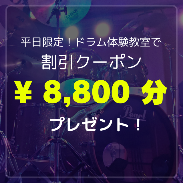 【 平日限定!ドラム体験教室 】を開催!