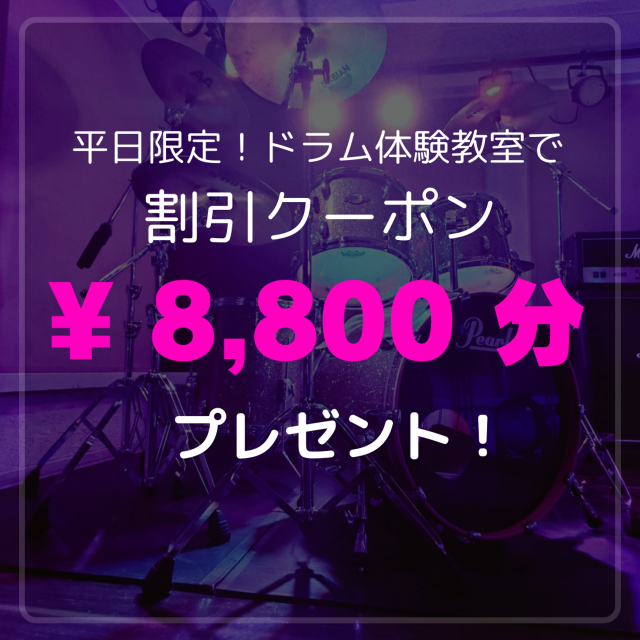 平日限定!ドラム体験教室で